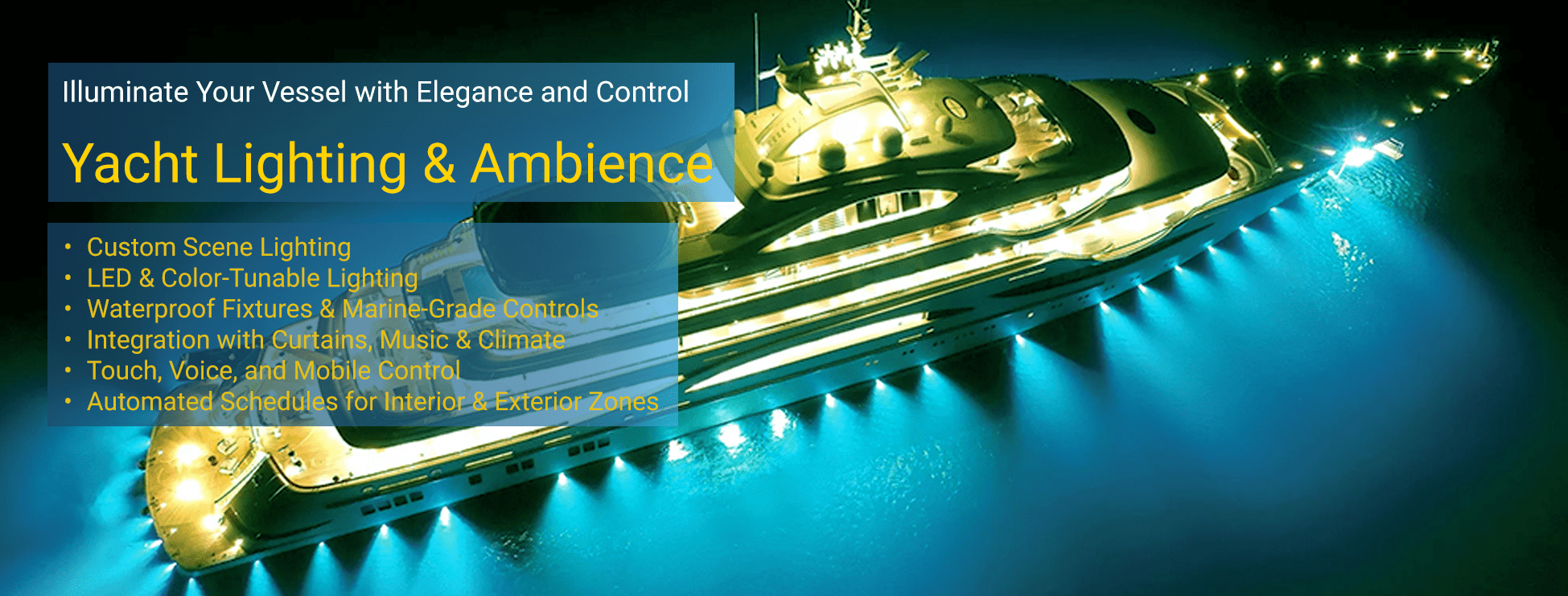 Whether it’s a sunset cruise or evening event, your yacht lighting responds instantly.